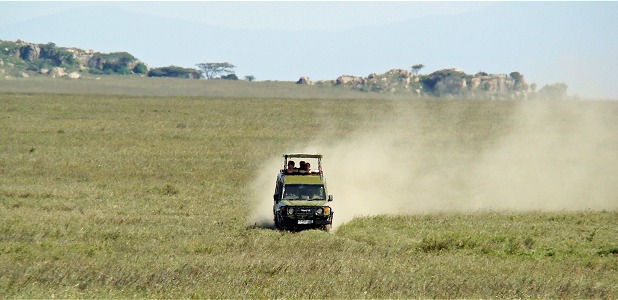 De flesta safarier är bilburna. På en sådan reser du till och mellan parkerna i ett safarifordon som körs av en lokal safarichaufför. Väl på plats i parkerna görs all eller den mesta av djurskådningen i samma fordon.